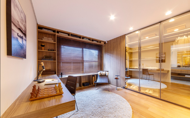 Diferenciais da planta 334m²: Previsão para ar condicionado no estar/jantar, terraço social, suítes, cozinha e terraço íntimo; terraço técnico para condensadora de ar condicionado; acesso de serviço independente; cozinha com depósito reversível; churrasqueira entregue; sala íntima com terraço integrado; suíte Master com closet independente do quarto e terraço independente; caixilhos dos dormitórios com persiana de enrolar; hall social privativo.